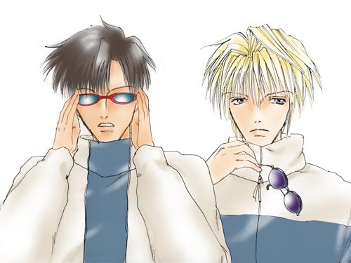 3388カウントゲットの日下部葉月様へ♥ リクエスト、八戒と三蔵のイラストでした はづしゃんはやおいの人じゃないので(なんだ、そりゃ笑)「ホモホモしてないイラストにしますね」 ということでリクをお受けしたのですが…果たしてうっさんくっせーふたりになってしまいました